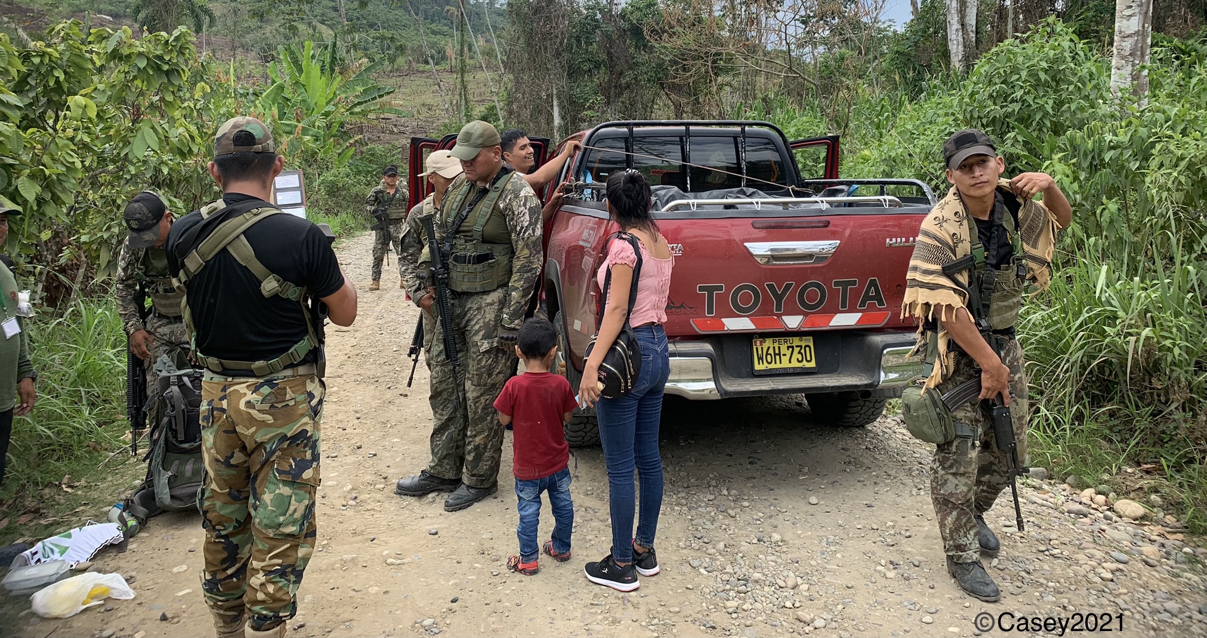 An armed escort for 1 day along the difficult steep at times rock bank of Rio Ene.